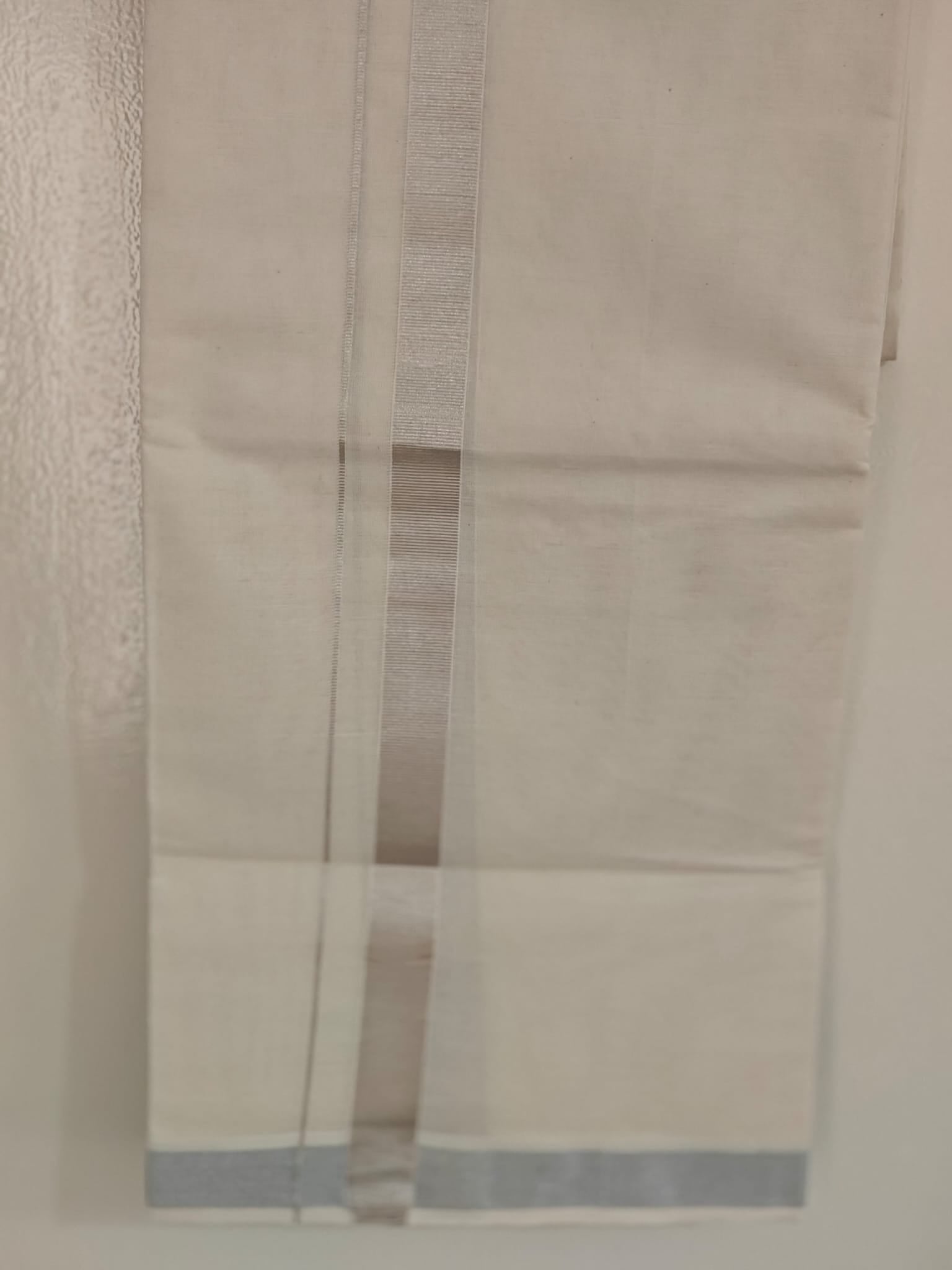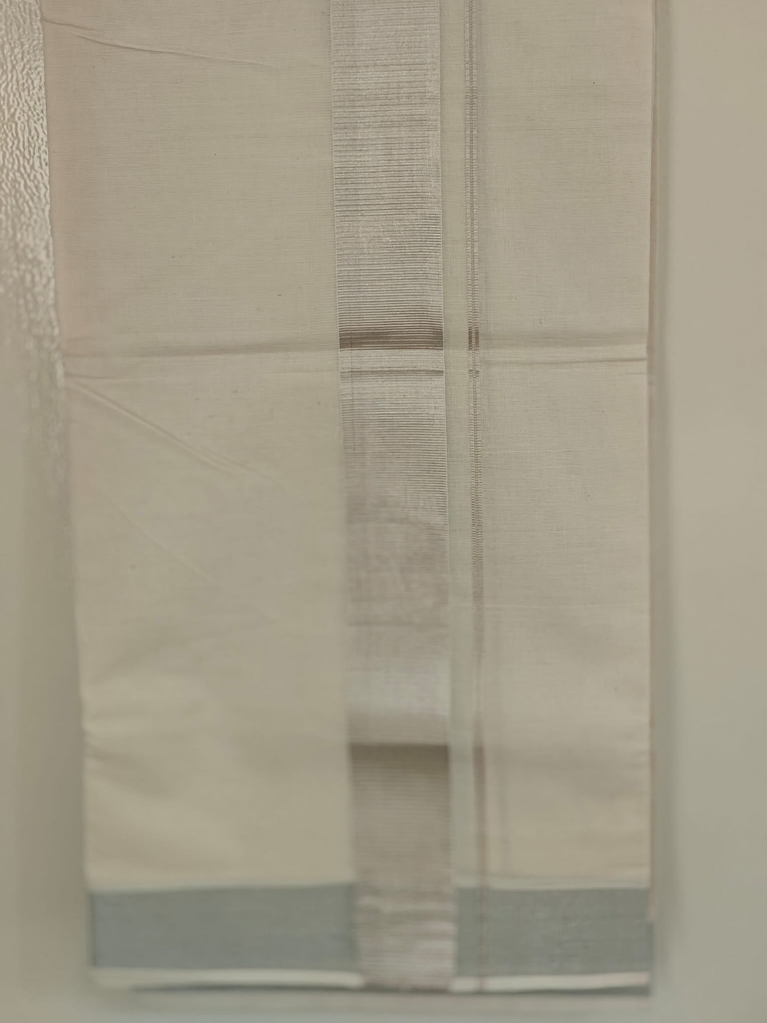 Celebrate Kerala’s timeless tradition with our Double Silver Kasavu Dothi a perfect blend of cultural heritage and refined elegance. This premium-quality dothi features authentic Malayali motifs and a beautiful double silver kasavu border, adding a touch of sophistication to any festive occasion.