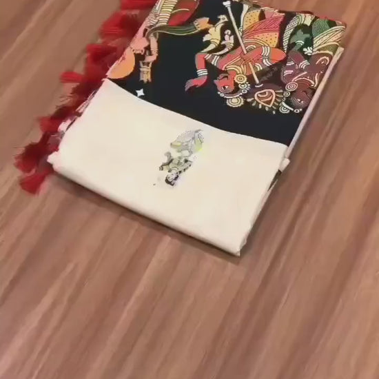 Handloom Tussar Silk Kalamkari Printed Saree