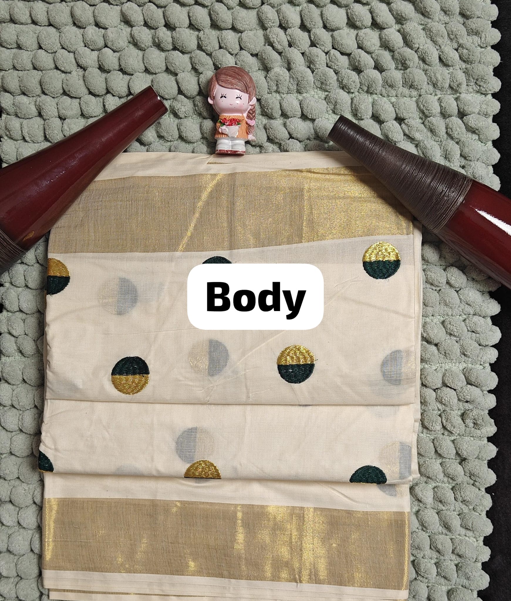 Kasavu saree - dual-tone embroidery GREEN / GOLD