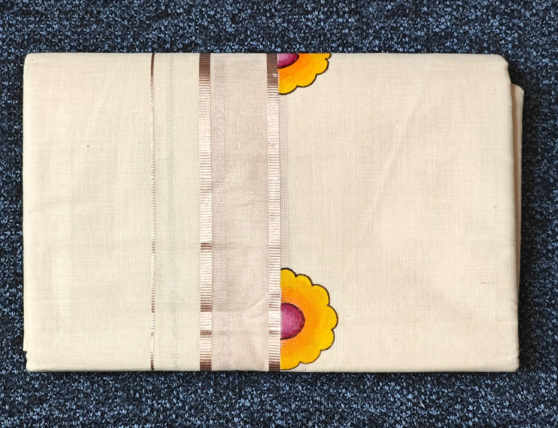 Design | Double Rose Gold Kasavu Border with Elegant Floral Motif Print |