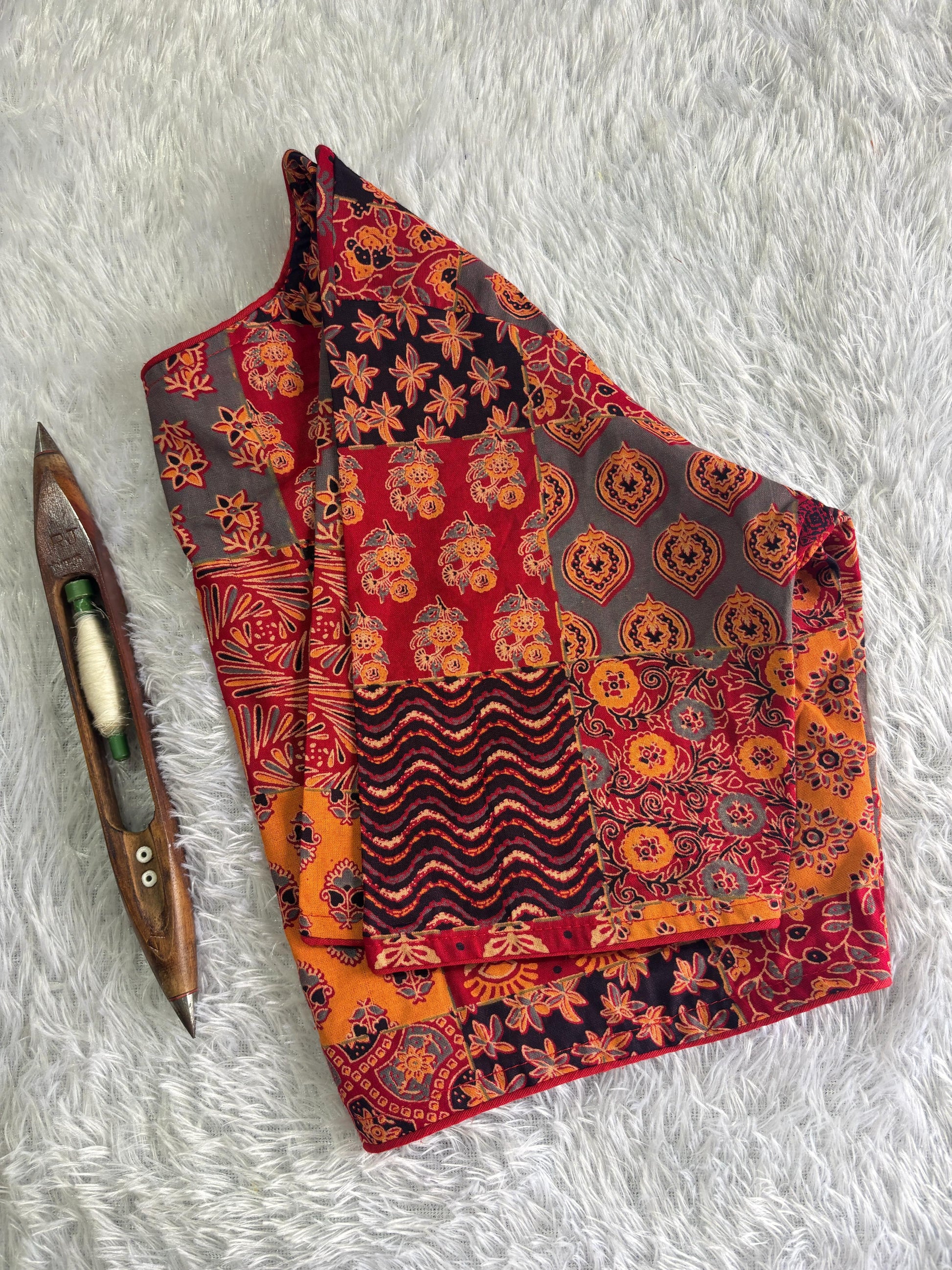 Upgrade your ethnic wardrobe with this stylish ready-made cotton blouse designed with a alterable fit for ultimate comfort and versatility. Crafted from premium South hand block cotton, this blouse ensures breathability, durability, and effortless elegance.