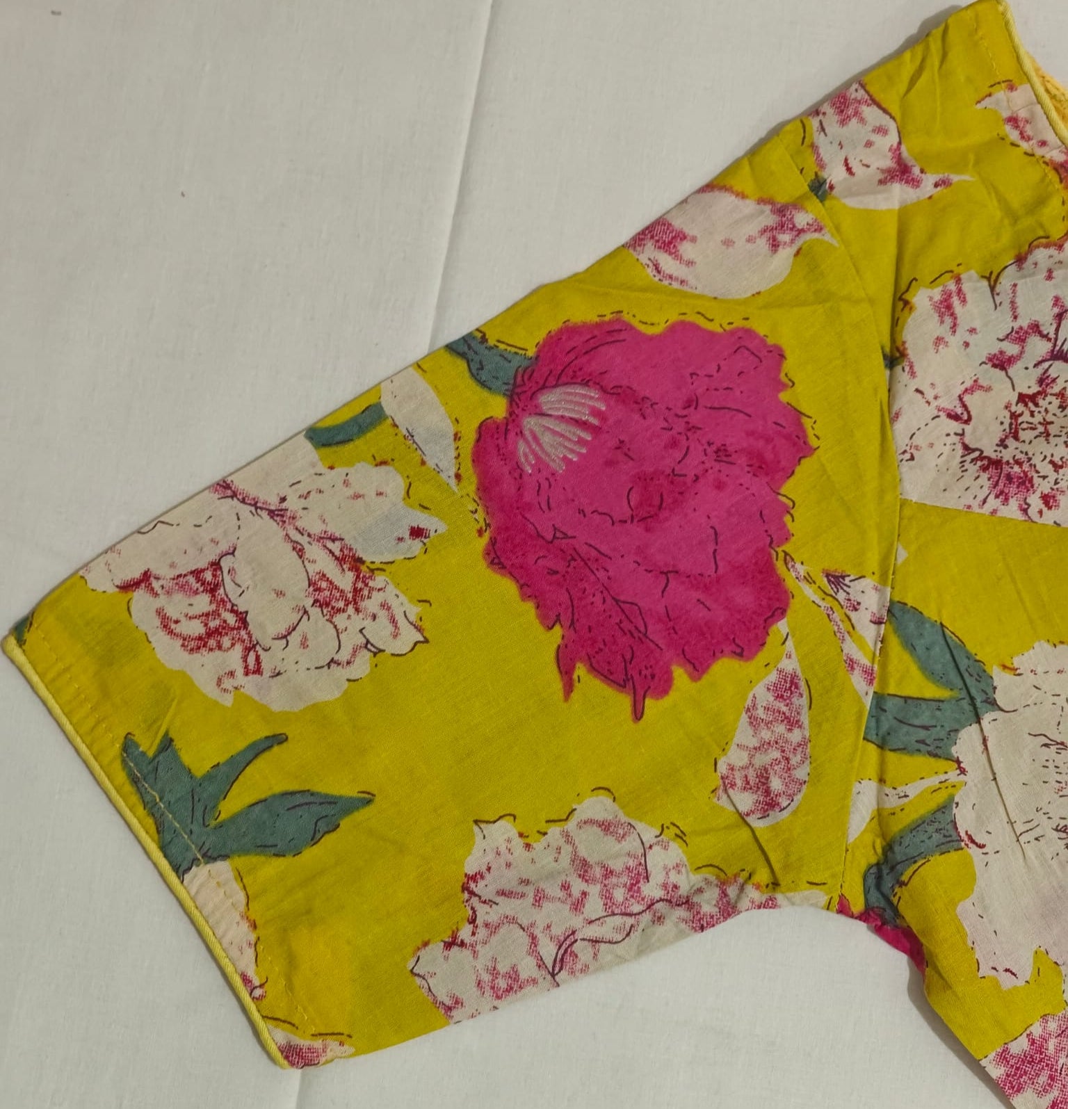 Upgrade your ethnic wardrobe with this stylish ready-made cotton blouse designed with a alterable fit for ultimate comfort and versatility. Crafted from premium South hand block cotton, this blouse ensures breathability, durability, and effortless elegance.