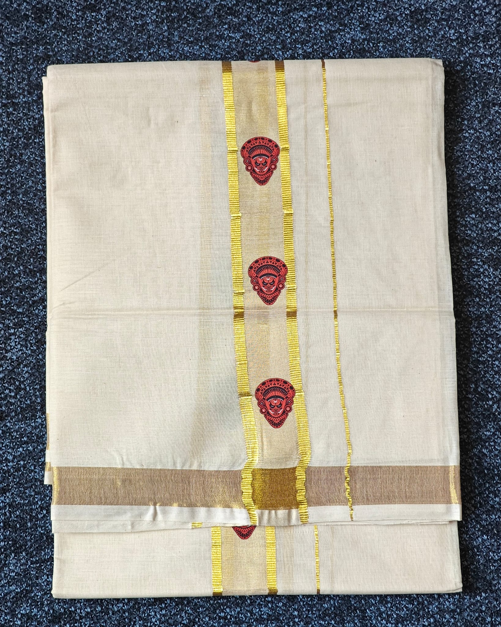 "THEYYAM" Printed Double Golden Kasavu Dothi